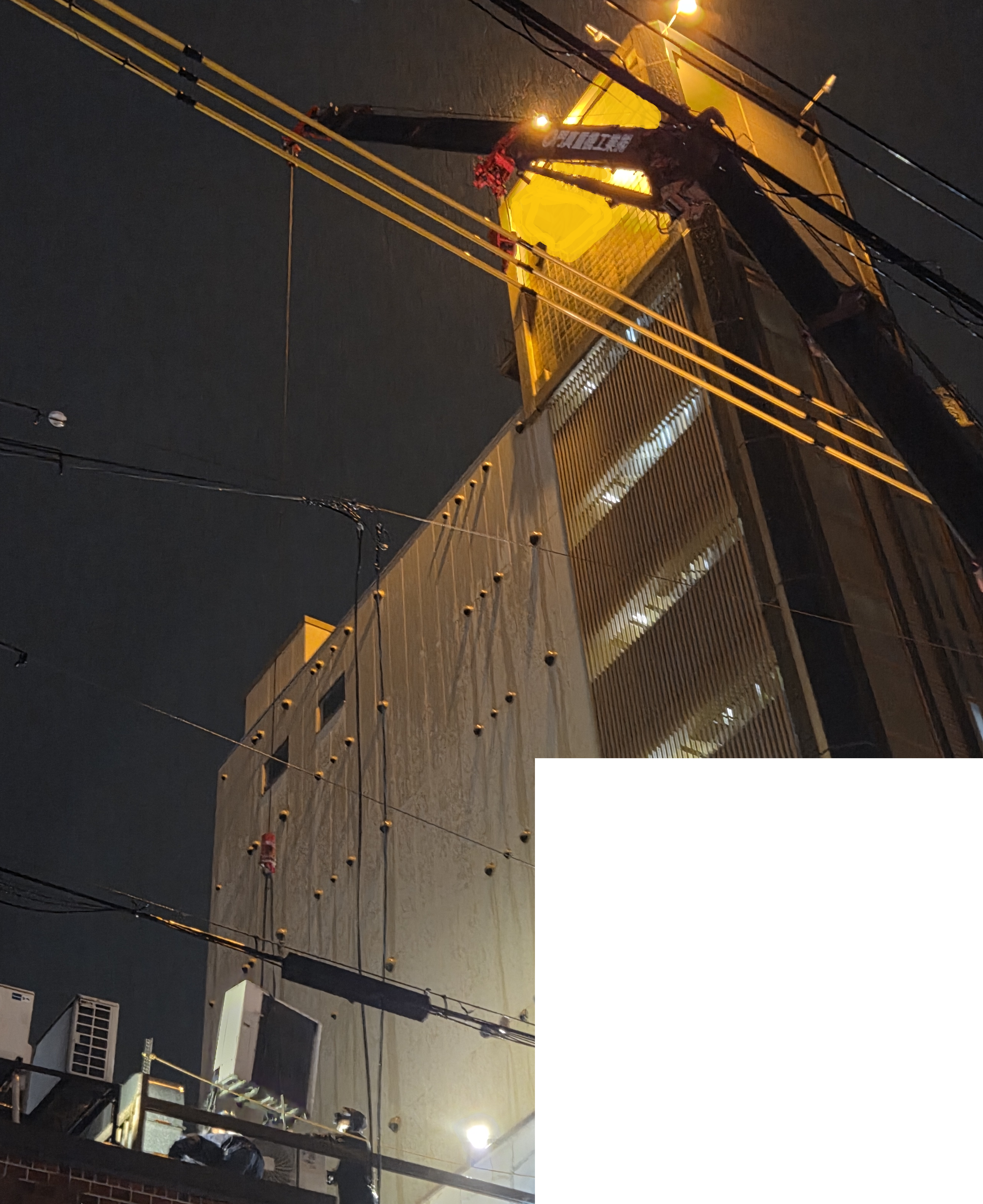 保護管を入れてレッカーもピタゴラスという重量物を建物の奥に設置したい場合や